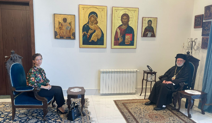 وأعلنت المطرانية في بيان، ان البحث تطرق إلى "أمور تخص الكنيسة الأرثوذكسية والرعية الأنطاكية في ويتشيتا- كنساس، كون السيدة بومبيو تنتمي إلى الكنيسة الأرثوذكسية وكانت على علاقة وثيقة بالرعية المذكورة"، مشيرة إلى أن عقيلة وزير الخارجية الأميركي كانت قد زارت أمس الجمعة "كاتدرائية القديس جاورجيوس والمتحف الجوفي تحت الكنيسة، كما زارت كنيسة القديس ديمتريوس في الأشرفية، ومكتبة الرجاء التي تعنى بالكتب الدينية والأيقونات البيزنطية".