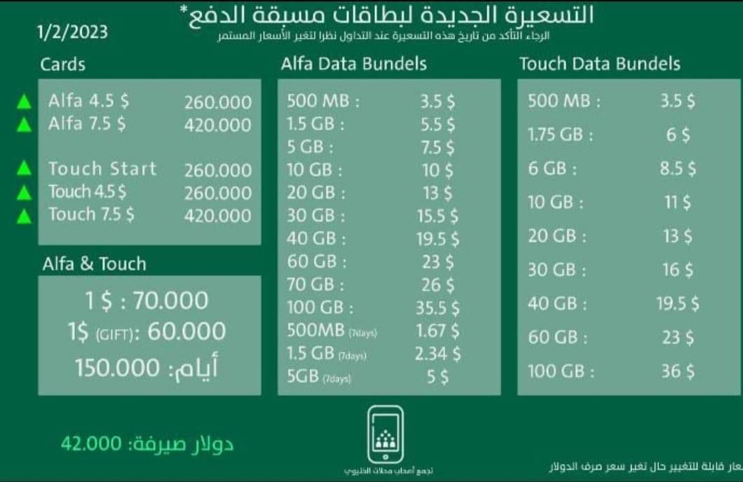 كما لفت إلى أن القرار النهائي لم يُتّخذ بشأن التسعيرة والمبدأ هو عدم الزيادة الكبيرة على المواطن، والتسعيرة ستكون على سعر "صيرفة" وباقة خاصة لذوي الدخل المحدود.
