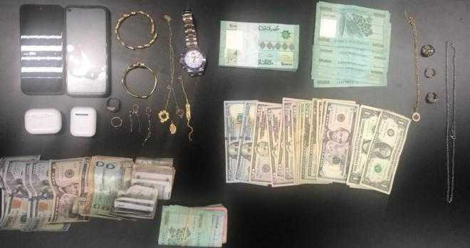 على أثر ذلك، توجّهت دورية من الفصيلة المذكورة بمؤازرة دورية من فصيلة المريجة في وحدة الدّرك الإقليمي إلى منزليهما، حيث ضبطت مبالغ مالية من عملات مختلفة، ومصاغا من الذّهب والفضّة، وهاتفين خلويين، وساعة يد باهظة الثمن.