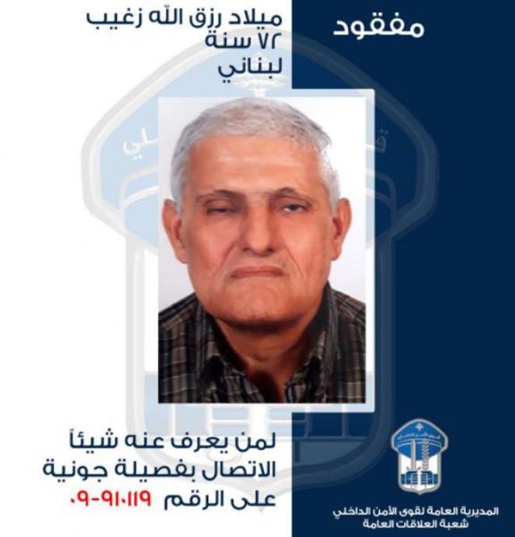 تُعمِّم المديرية العامة لقوى الأمن الداخلي، بناءً على إشارة القضاء المختص، صورة المفقود: