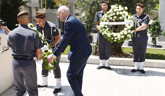 تمت مراسم تكريم الشهداء على وقع معزوفة لحن الموتى ولازمة النشيد الوطني، عزفتهما "موسيقى قوى الأمن الداخلي"، بعد أن أدت مجموعة من سرية المقر العام مراسم التشريفات للوزير.