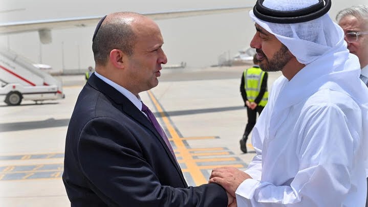 وصل رئيس الوزراء الإسرائيلي نفتالي بينيت، الخميس التاسع من يونيو (حزيران)، إلى الإمارات في زيارة قصيرة لإجراء محادثات مع رئيس الدولة الشيخ محمد بن زايد آل نهيان، بعد وقت قصير من توقيع اتفاق للتجارة الحرة بين البلدين.