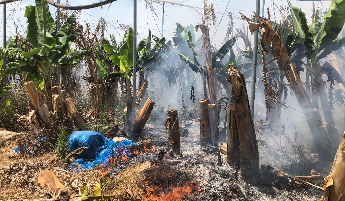 شب حريق كبير في أحد بساتين الموز والحمضيات في منطقة راس العين جنوب صور، أتى على الأشجار المثمرة والخيم البلاستيكية وشبكات الري البلاستيكية، واقتربت النيران من المنازل التي ناشد سكانها المعنيين إطفاء الحريق.