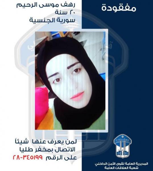 تُعمِّم المديريّة العامّة لقوى الأمن الدّاخلي، بناءً على إشارة القضاء المختص، صورة المفقودة: