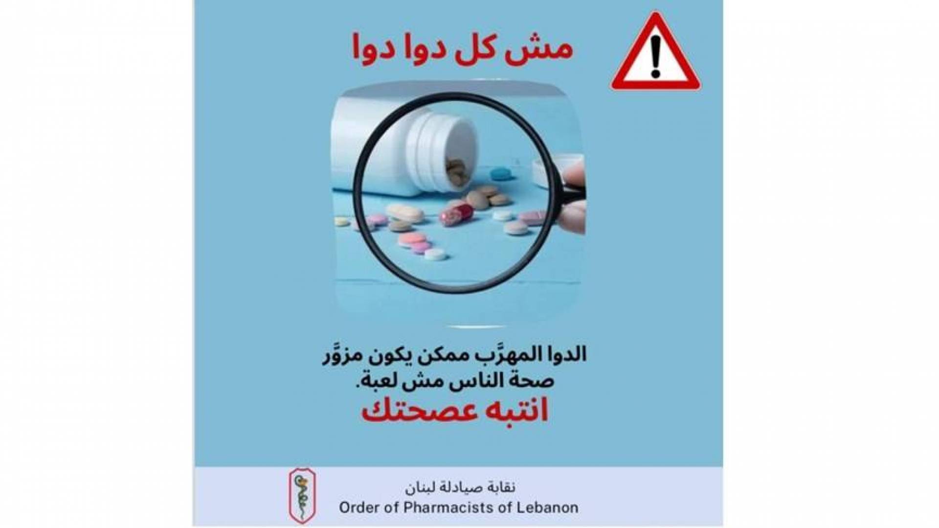 استكمالا للحملة التي اطلقها نقيب الصيادلة جو سلوم، تابعت نقابة الصيادلة في لبنان عملها التوعوي عبر منشور أكدت فيه ضرورة الانتباه في التعاطي مع الأدوية المستوردة، اذ ان البعض منها قد لا تتوفر فيه الشروط الصحية والعلمية المطلوبة، ولافتة الى ان الدواء المهرّب قد يكون مزورا، والحملة اتت تحت عنوان "مش كل دوا دوا".