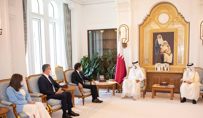تسلم الرسالة رئيس مجلس الوزراء ووزير الداخلية الشيخ خالد بن خليفة بن عبد العزيز آل ثاني، خلال استقباله للوزيرين المكاري ونصار صباح اليوم، ترافقهما سفيرة لبنان لدى الدوحة فرح بري. وخلال اللقاء، تم استعراض علاقات التعاون بين البلدين وآفاق تنميتها وتعزيزها.