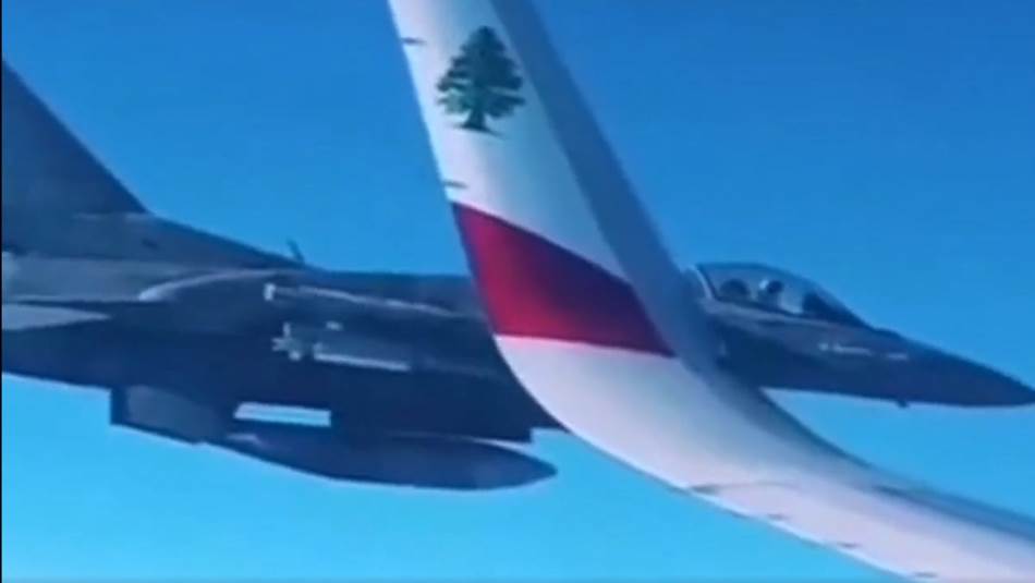 ونشر الحساب مقطع فيديو يظهر مقاتلة حربية من طراز "أف 16" تقترب من الطائرة المدنية.