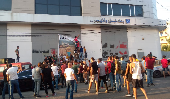 كما تم تعليق صورة الناشطين الموقوفين على مدخل البنك، ليكونا الشعلة في الثورة على المصارف. ورددوا الأغاني الثورية عبر مكبرات الصوت، وذلك وسط إجراءات أمنية للجيش اللبناني في ساحة حلبا.