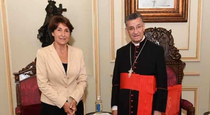 استقبل البطريرك الماروني الكردينال مار بشارة بطرس الراعي في الصرح البطريركي في بكركي، السفيرة الفرنسية آن غريو التي عرضت لاجواء زيارة وزيرة خارجية فرنسا الاخيرة الى لبنان ولوضع القطاع التربوي فيه.