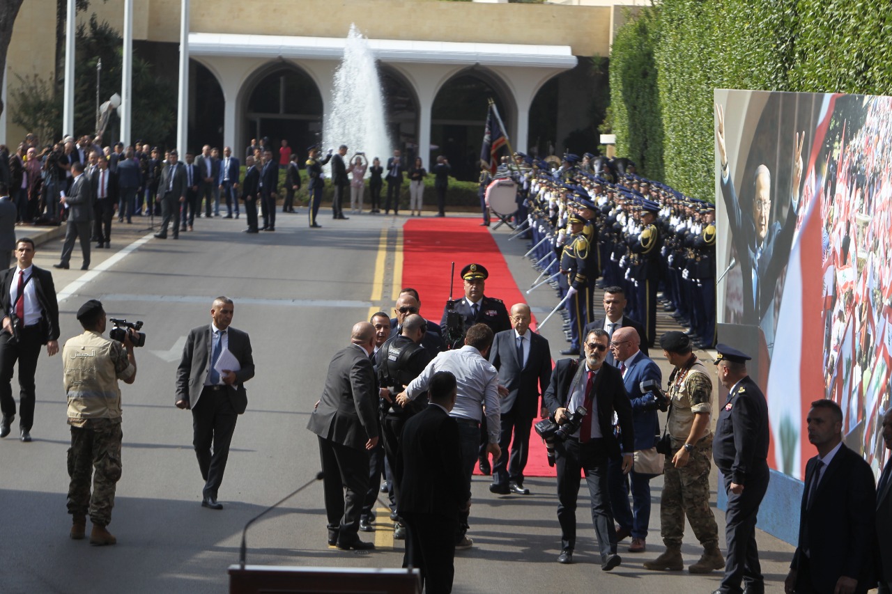وعند انتهاء خطابه، سلّم عون شعلة «التيار الوطني الحرّ» إلى قطاع الشباب في «التيار»، وغادر بعدها قصر بعبدا بمرافقة الحرس الجمهوري وعناصر البروتوكول ونواب من تكتل التيار الحر، متّجهاً إلى مقرّه في الرابية، حيث قوبل باستقبال شعبي ايضاً من مناصريه بالورد و»الزفّة والدبكة».