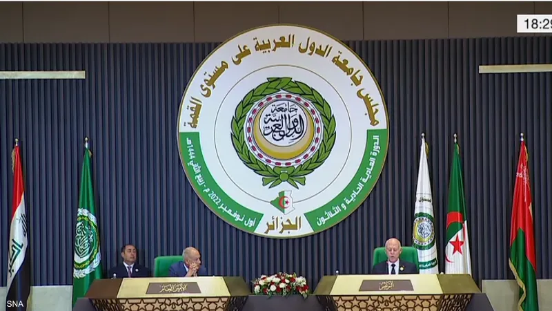 "نحن قادة الدول العربية المجتمعون بمدينة الجزائر بالجمهورية الجزائرية الديمقراطية الشعبية، يومي الفاتح والثاني من نوفمبر 2022، الموافق ل 7-8 ربيع الثاني 1444 هجرية في الدورة العادية الحادية والثلاثين (31) لمجلس جامعة الدول العربية على مستوى القمة، بدعوة كريمة من سيادة الرئيس عبد المجيد تبون، رئيس الجمهورية الجزائرية الديمقراطية الشعبية: