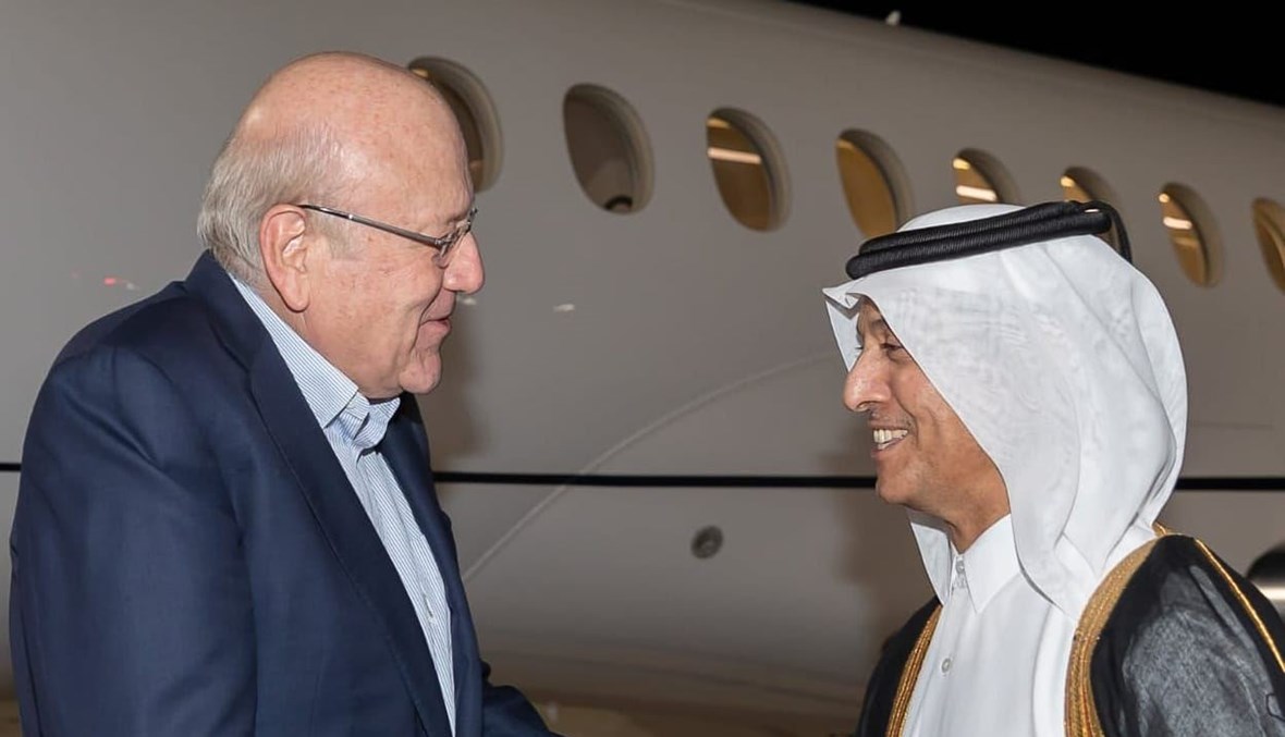وكان في استقبال ميقاتي والوفد اللبناني، لدى وصوله إلى مطار حمد الدولي، وزير الدولة القطري فهد بن فيصل آل ثاني ورئيسة البعثة اللبنانية إلى دولة قطر فرح بري.