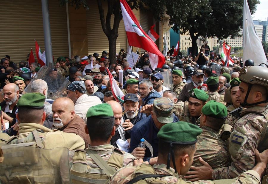 ولعل اللافت في الامر ان الإدانة الأميركية الجديدة جاءت على وقع احتدام التحركات المطلبية واشتداد الازمات الخدماتية التي بلغت حدودا غير مسبوقة في ازمة هيئة اوجيرو الى حدود التأهب لطلب تسليم القطاع الى الجيش وهو تطور غير مسبوق منذ بداية ازمة الانهيار المالي قبل اكثر من ثلاثة أعوام وينذر بتداعيات وتعقيدات كثيفة. وفي هذا المناخ نفّذ المجلس التنسيقي للمتقاعدين في القطاع العام اعتصاماً امس في ساحة رياض الصلح، بمشاركة كثيفة من رابطة قدامى القوات المسلحة اللبنانية ومختلف مجموعات العسكريين المتقاعدين دعماً لمطالبهم المعيشية، وسط انتشار أمني كثيف.