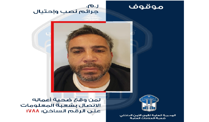 لذلك، وبناء على إشارة القضاء، تعمم المديرية العامة لقوى الأمن الداخلي صورته، وتطلب من الذين وقعوا ضحيّة أعماله، الاتصال على الرقم الساخن للشعبة: 1788 تمهيدًا لاتّخاذ الإجراءات القانونيّة اللازمة".