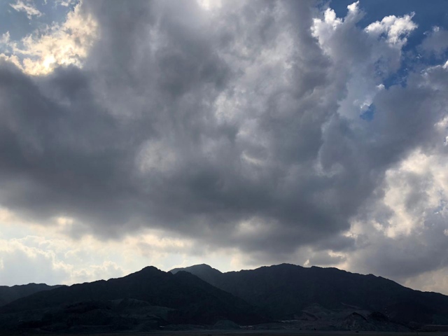٢- الجو: غائم جزئياً ومتقلب مع أحتمال امطار رعدية متفرقة خاصة جبلاً وفي الداخل