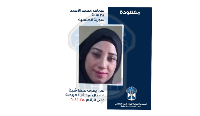 لذلك، يرجى من الذين شاهدوها ولديهم أي معلومات عنها أو عن مكانها، الاتصال بمخفر العريضة في وحدة الدرك الإقليمي على الرقم820250/06 للإدلاء بما لديهم من معلومات" .