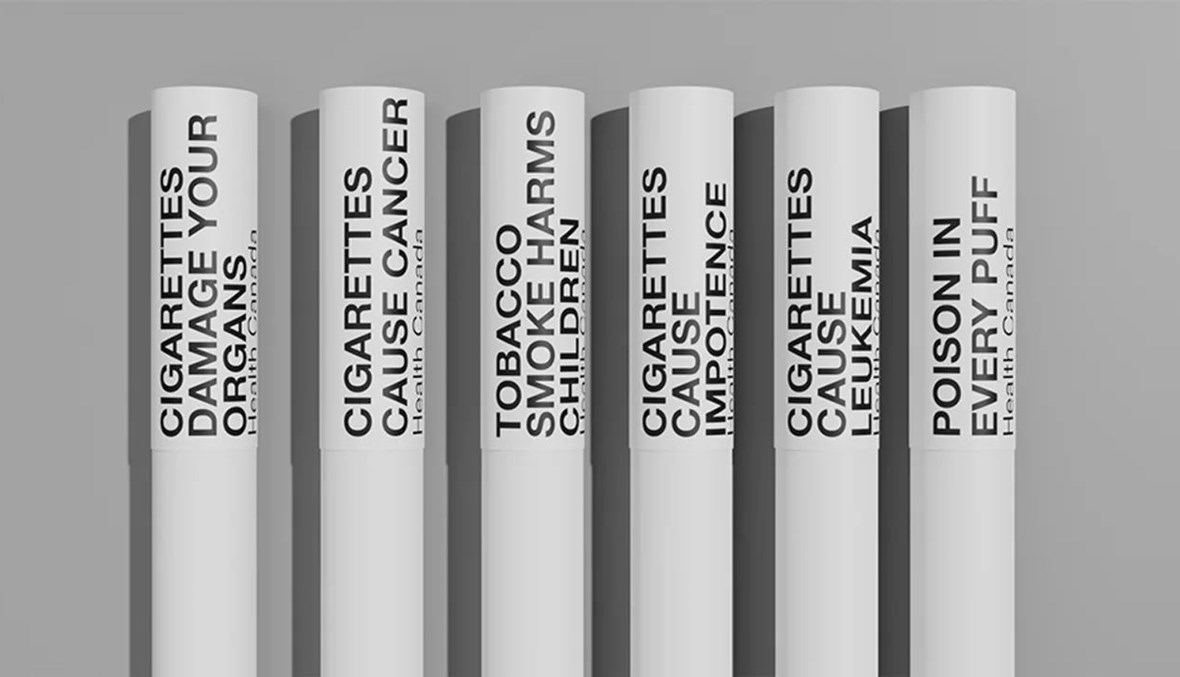 كانت كندا أول دولة في العالم اشترطت على منتجي السجائر وضع تحذيرات مرفقة بصورٍ على علب السجائر في عام 2001. وخلال العقد اللاحق، فُرض حظر التدخين في الأماكن المغلقة.