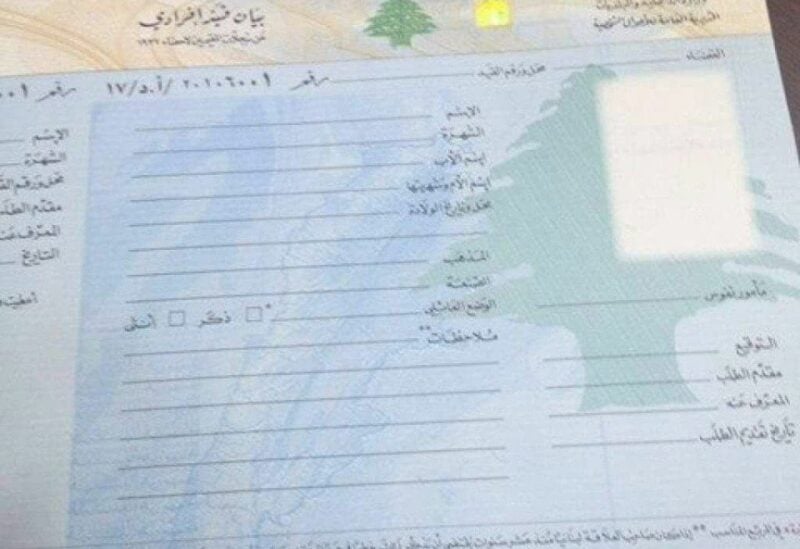 صدر عن المديرية العامة للأحوال الشخصية بيان أعلنت فيه "عن تاريخ بدء العمل على برنامج بيان القيد الإفرادي والعائلي الالكتروني, حيث سيباشر العمل بهذا النموذج بتاريخ 11/9/2023".