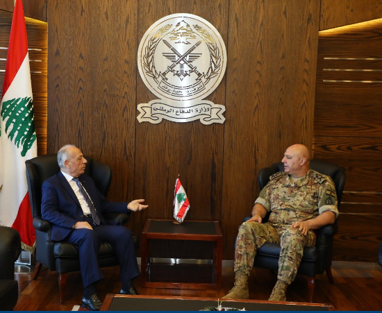 استقبل وزير الدفاع الوطني موريس سليم في مكتبه في اليرزة قائد الجيش العماد جوزاف عون واطلع منه على اوضاع المؤسسة العسكرية والوضع الامني العام في البلاد.