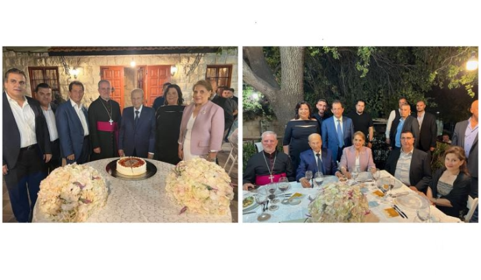 وفي الختام، قطع العماد عون والمطران عون وصاحبا الدعوة قالب حلوى في المناسبة.
