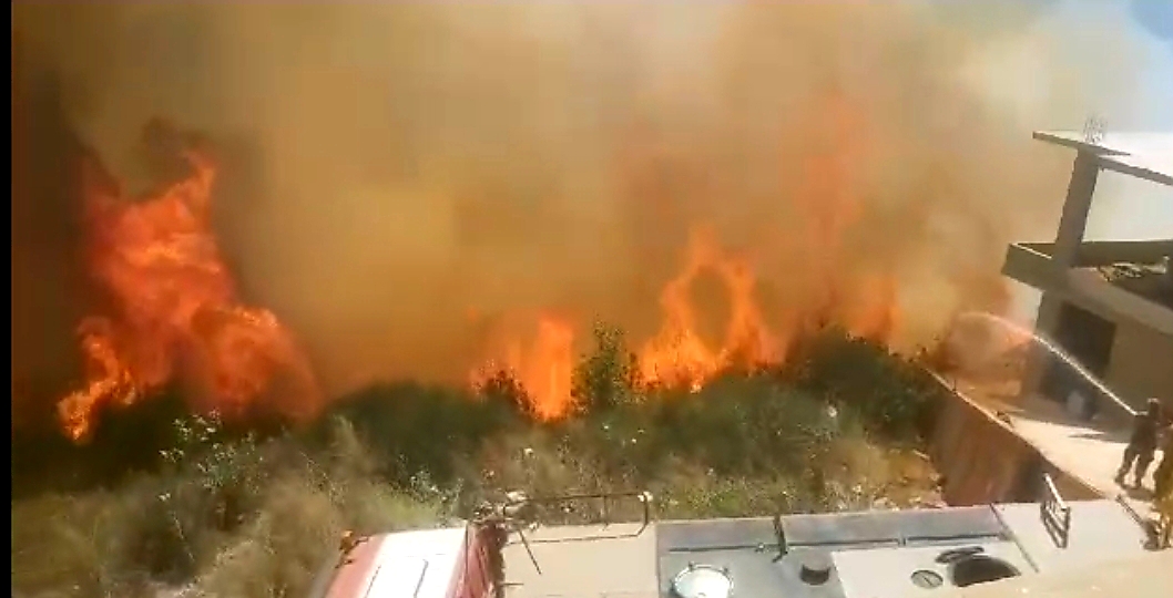 وامتّدت النيران بسرعة كبيرة، وبلغت الشارع الرئيسي في بلدة حرار بالقرب من سوبر ماركت حسون.