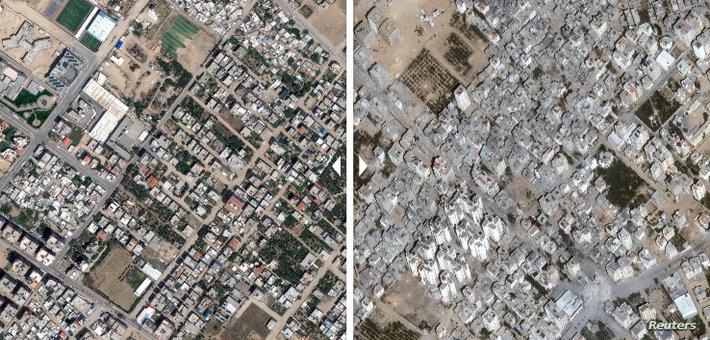 وتوضح الصور أن القوات الإسرائيلية تقدمت على طول الطريق الجنوبي إلى البحر الأبيض المتوسط، إلا أنه يبدو أنها لم تحرز تقدما كبيرا على طول الطرق الأخرى، الشمال الغربي والشمال الشرقي، في الأيام الماضية.