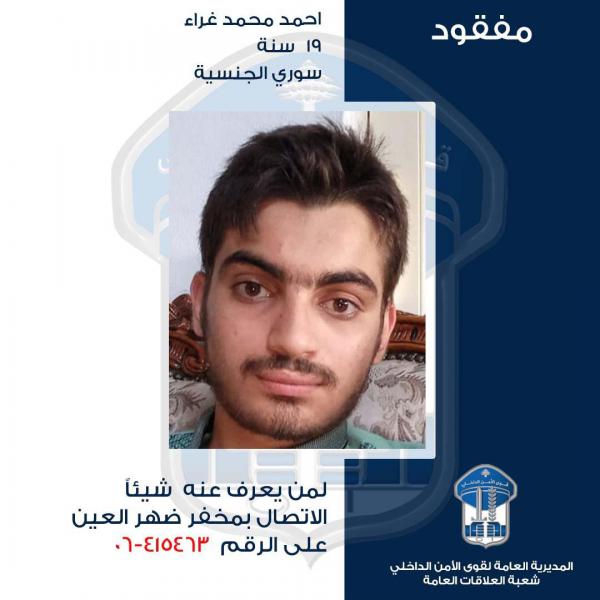 تُعمِّم المديرية العامّة لقوى الأمن الداخلي، بناءً على إشارة القضاء المختص، صورة المفقود: