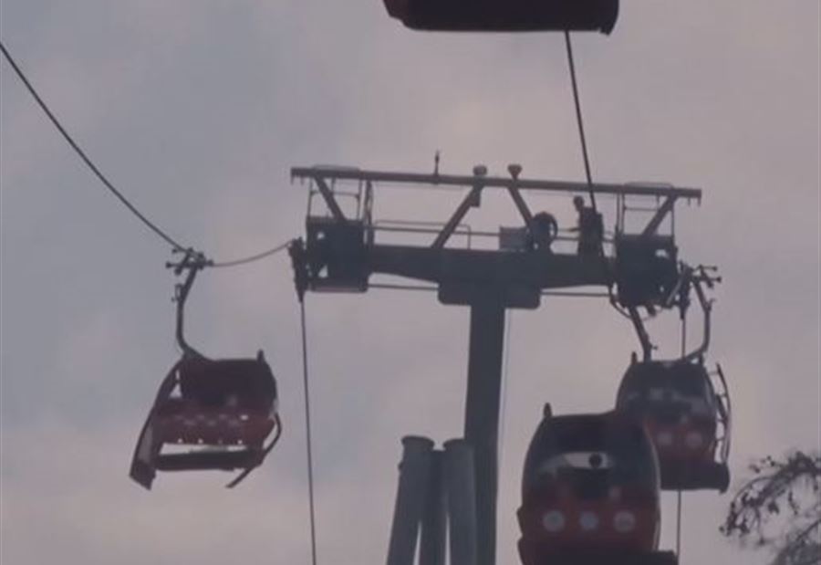 وأظهر فيديو عربة محطمة وهي تتأرجح على الحبال المقطوعة في منحدر جبلي صخري.