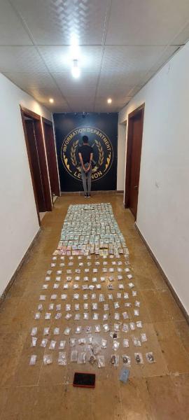 "في إطار المتابعة المستمرة التي تقوم بها قوى الأمن الداخلي لمكافحة عمليات تجارة وترويج المخدرات في مختلف المناطق اللبنانية، توافرت معطيات لدى شعبة المعلومات حول قيام شخص بترويج المواد المخدرة في محلة طريق المطار على متن دراجة آلية. على أثر ذلك، باشرت القطعات المختصة في الشعبة إجراءاتها الميدانية والاستعلامية لكشف هوية المروج، ونتيجة الاستقصاءات والتحريات، توصلت إلى تحديد هويته، ويدعى: ح.و. (مواليد عام 1990، لبناني) وهو من أصحاب السوابق الجرمية بقضايا مخدرات ونقل أسلحة وذخائر حربية، ويوجد في حقه خلاصة حكم بجرم نقل أسلحة وذخائر حربية وإطلاق نار.