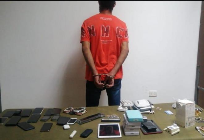 بتاريخ 3-10-2024، وبعد عملية رصد ومراقبة دقيقة، تمكنت إحدى دوريات الشعبة من توقيفه في مدينة صور، وبتفتيشه ضبط بحوزته مبلغ مالي وأجهزة خلوية ومجوهرات وآلات انترنت وأغراض أخرى.