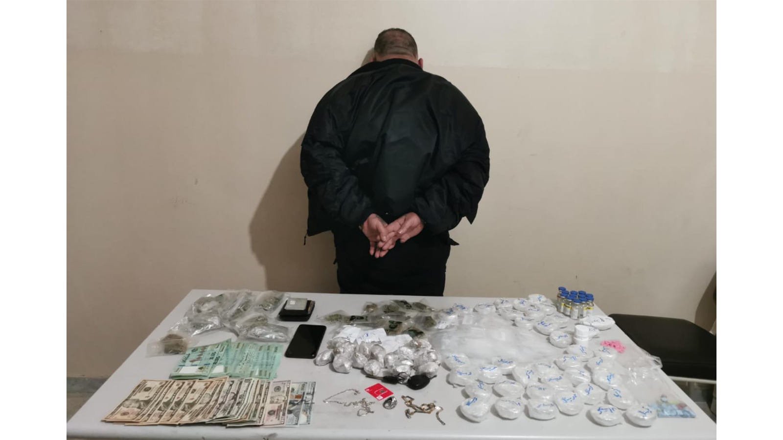 عُثِرَ بحوزته على كميّات كبيرة من المخدّرات معدّة للترويج (كيتامين، باز كوكايين، كريستال ميث، كبتاغون، حبوب مخدّرة، حشيشة كيف، ماريجوانا…) إضافةً إلى هواتف خلويّة ومبالغ ماليّة